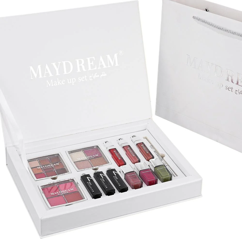 صندوق أحلام Maydream هو طقم مكياج متكامل يجمع بين الرقي والشمولية في علبة واحدة فاخرة. يحتوي الطقم على باليت ظلال عيون بتركيبة حريرية، مجموعة بلاشر لنضارة طبيعية، تشكيلة متنوعة من أحمر الشفاه (مات ولامع)، وطلاء أظافر بألوان عصرية. يأتي بتصميم أبيض بشعار فضي مع حقيبة إهداء مطابقة، مما يجعله الخيار الأمثل للعرائس وللإهداء في المناسبات.