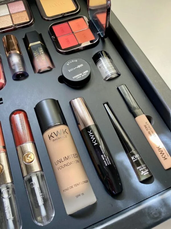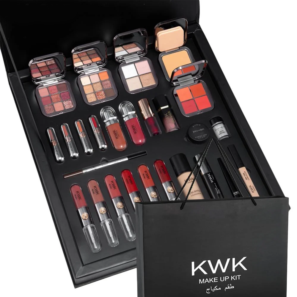 طقم مكياج KWK Studio المتكامل | مجموعة التجميل الفاخرة 26 قطعة من المستحضرات المتنوعة لتغطية جميع احتياجاتك في المكياج اليومي والمناسبات الخاصة. يتميز بجودة عالية ويمنحك مظهرًا متألقًا يدوم طوال اليوم