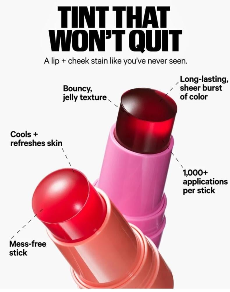 احصلي على إطلالة مشرقة وحيوية مع جيلي تينت من ميلك ميك اب؛ لمسة ساحرة تمنح خدودك وشفاهك لوناً طبيعياً وثباتاً يدوم طويلاً.